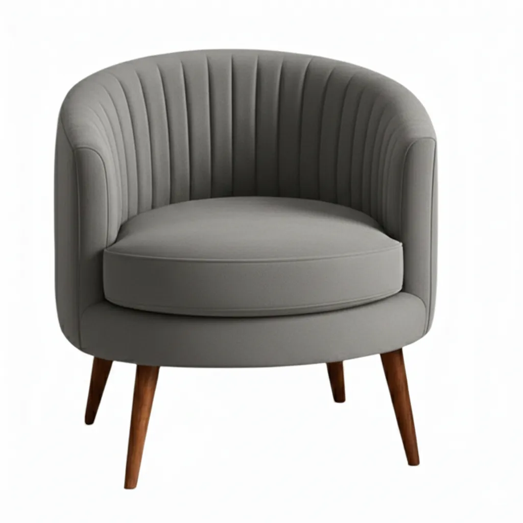 The Fluted Barrel features a deep, semi-circular back that curves around to form the armrests.
