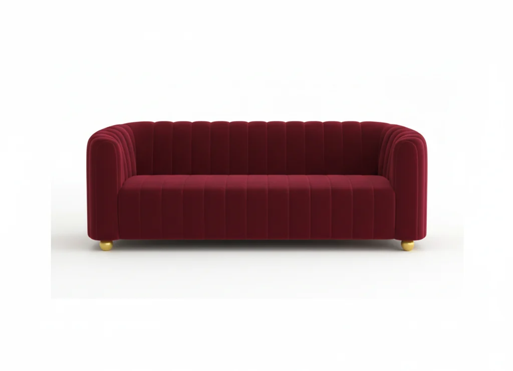 The Fluid Form Sofa is a masterclass in soft geometry. Featuring a classic tuxedo silhouette—where the back and arms sit at a uniform height—this piece creates a sense of cozy enclosure and architectural precision.