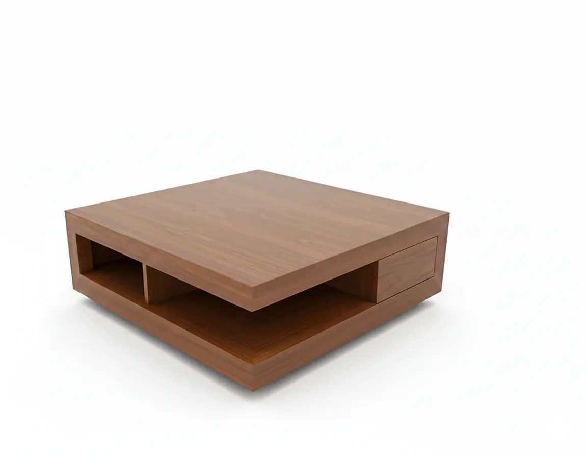 The Headquarter Cube is a study in spaces. Its form is defined by two substantial, parallel wooden slabs that create a deep, open-sided middle chamber. This horizontal “cut-out” allows the top surface to appear as if it is floating, while providing an expansive 360-degree display area for books and decor.