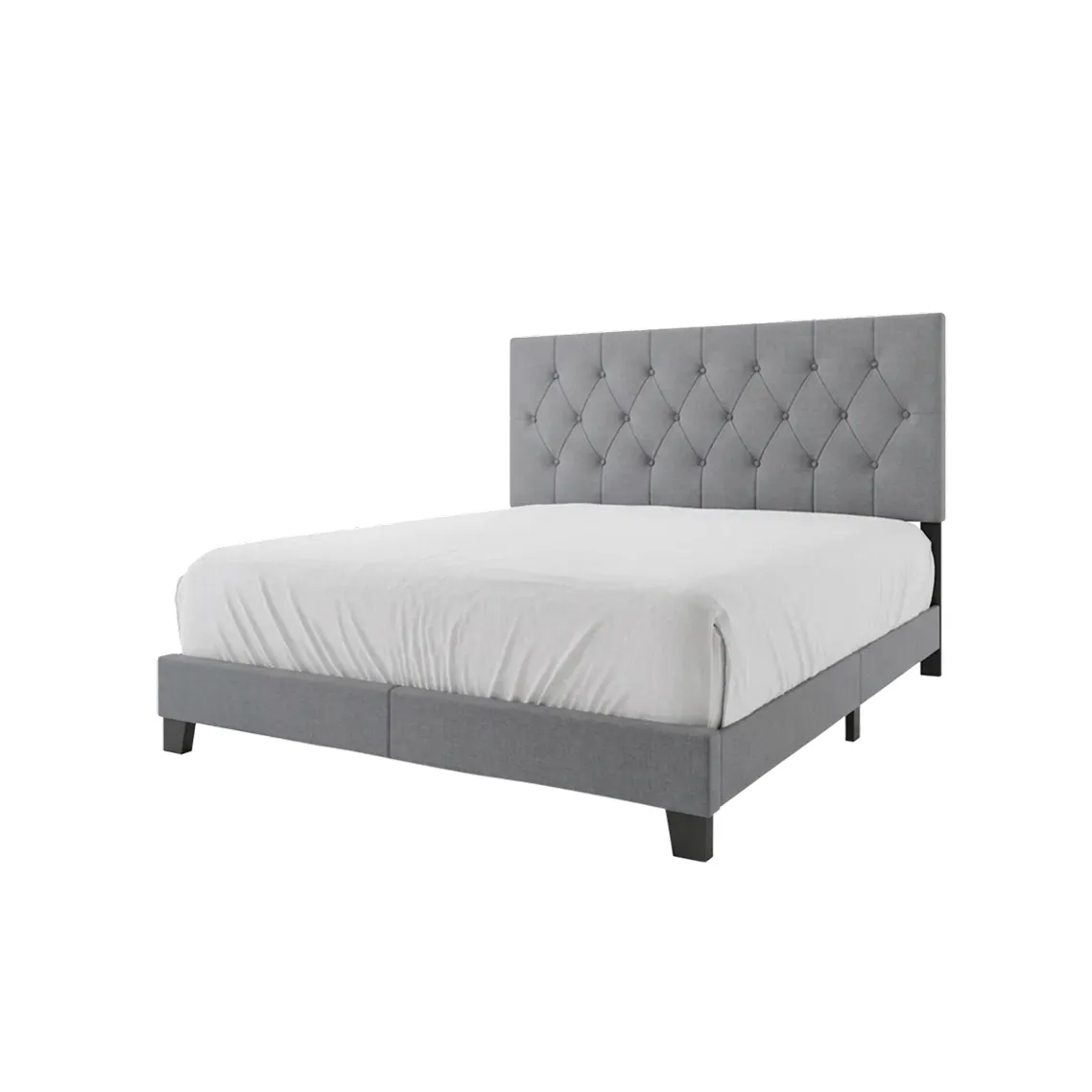 The Monarch Muse is built on a refined, low-profile box frame that emphasizes a strong, grounded presence. The centerpiece is the high-rectangular headboard, which features deep, diamond-patterned tufting that adds immediate visual depth and texture.
